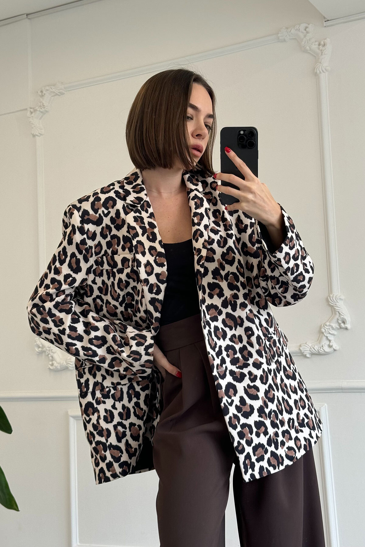 MAGARDE Black Leopard Patterned Blazer Jacket