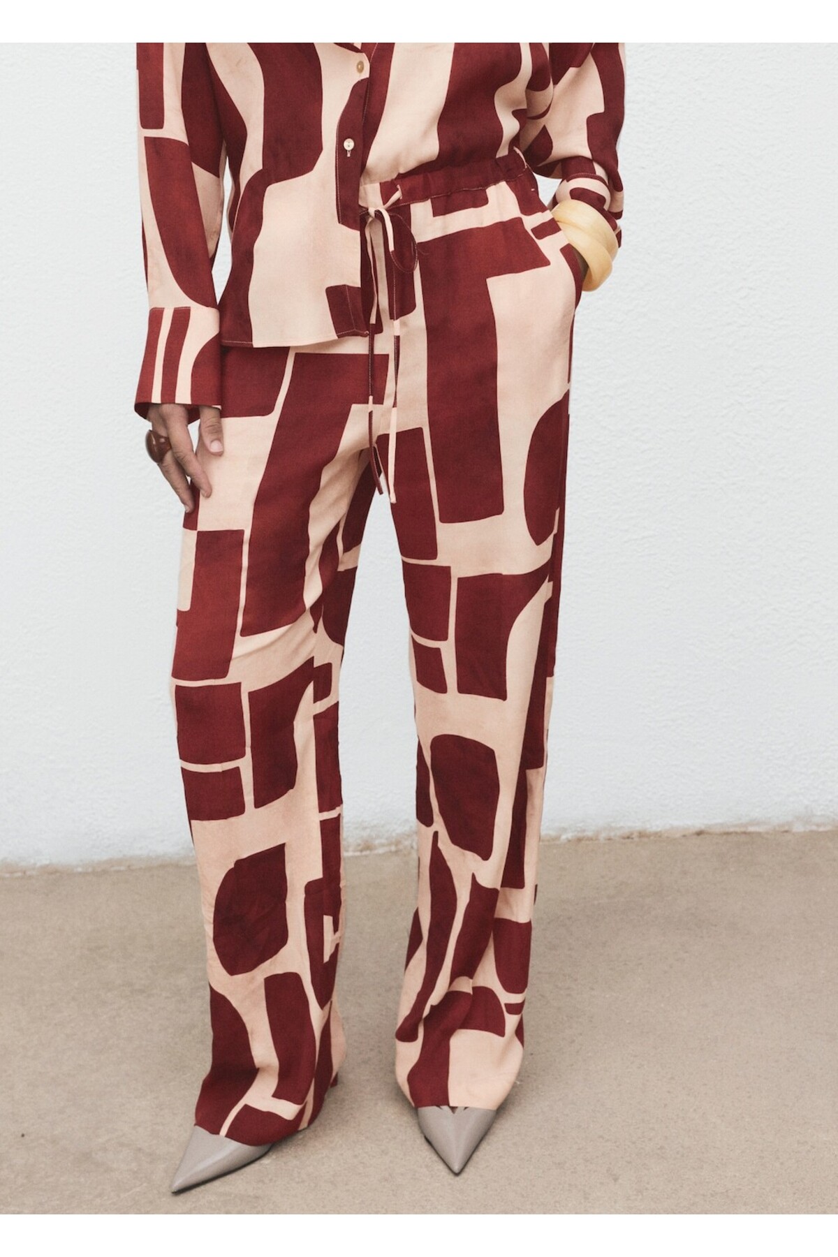 MANGO Woman Geometric Pattern Draped Pants features
