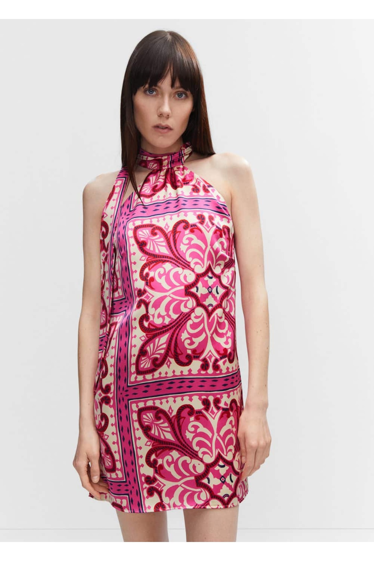 MANGO Woman Patterned Halter Neck Long Dress features