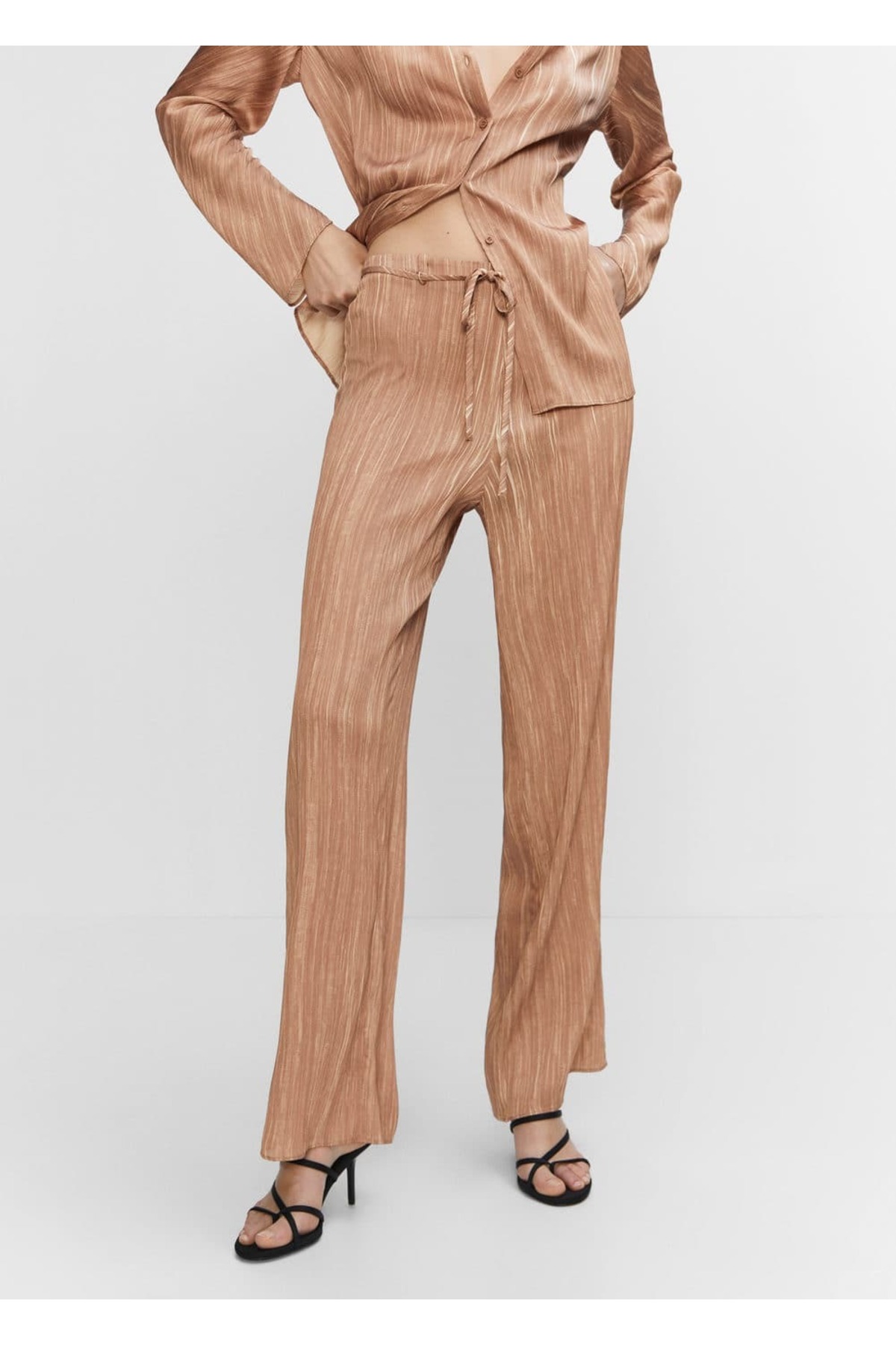 MANGO Woman Pleated satin pants features