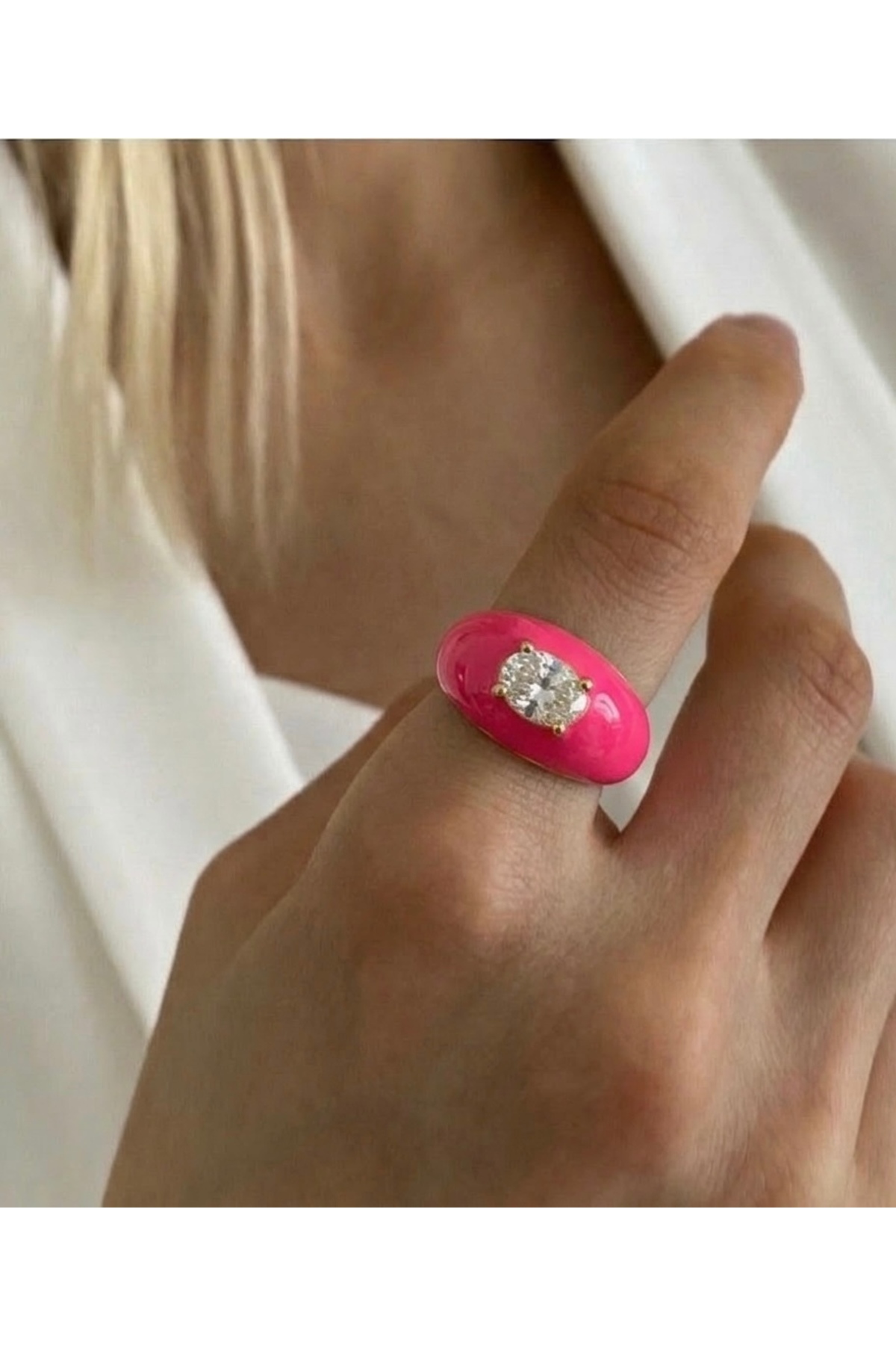 Markiz Takı Fuchsia Stone Curved Ring - Adjustable features
