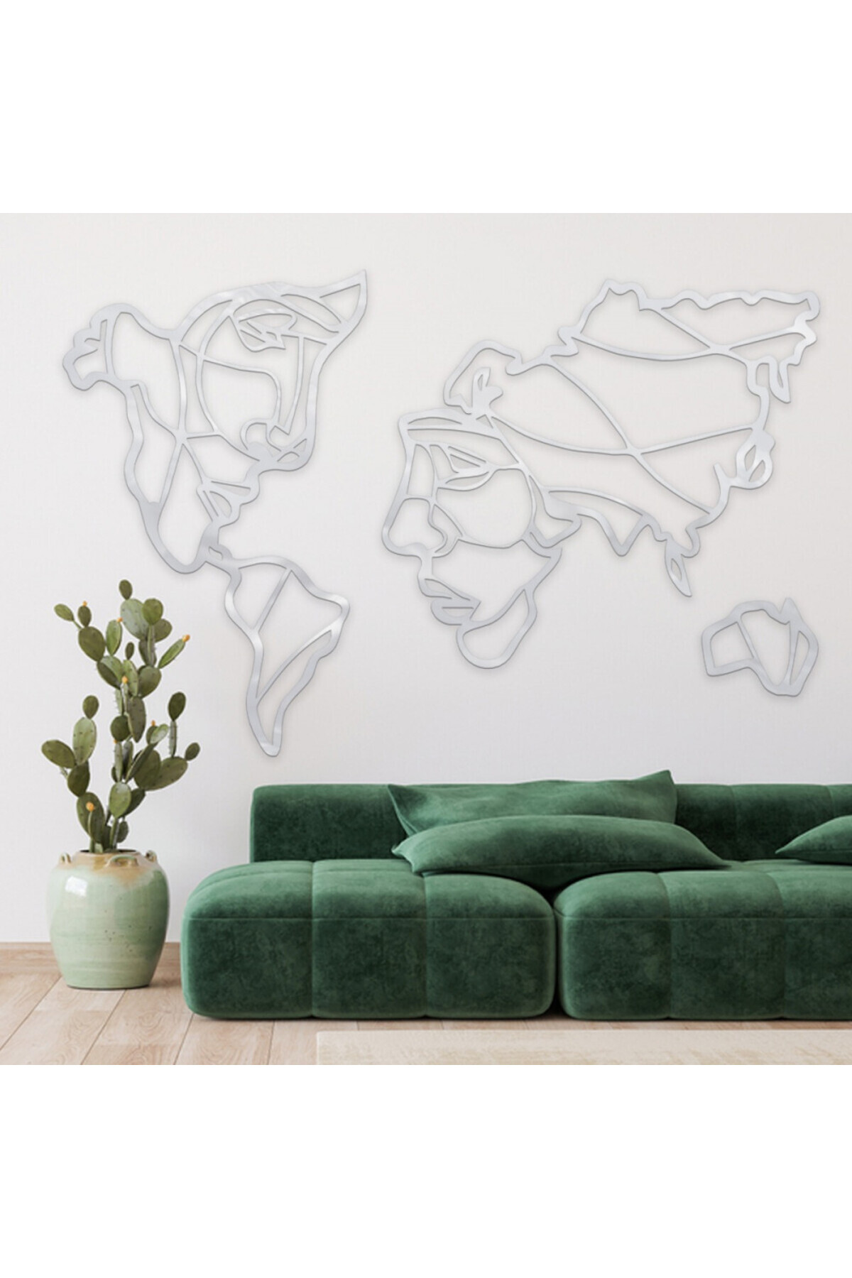 Marktna Silver acrylic panel with a world map pattern