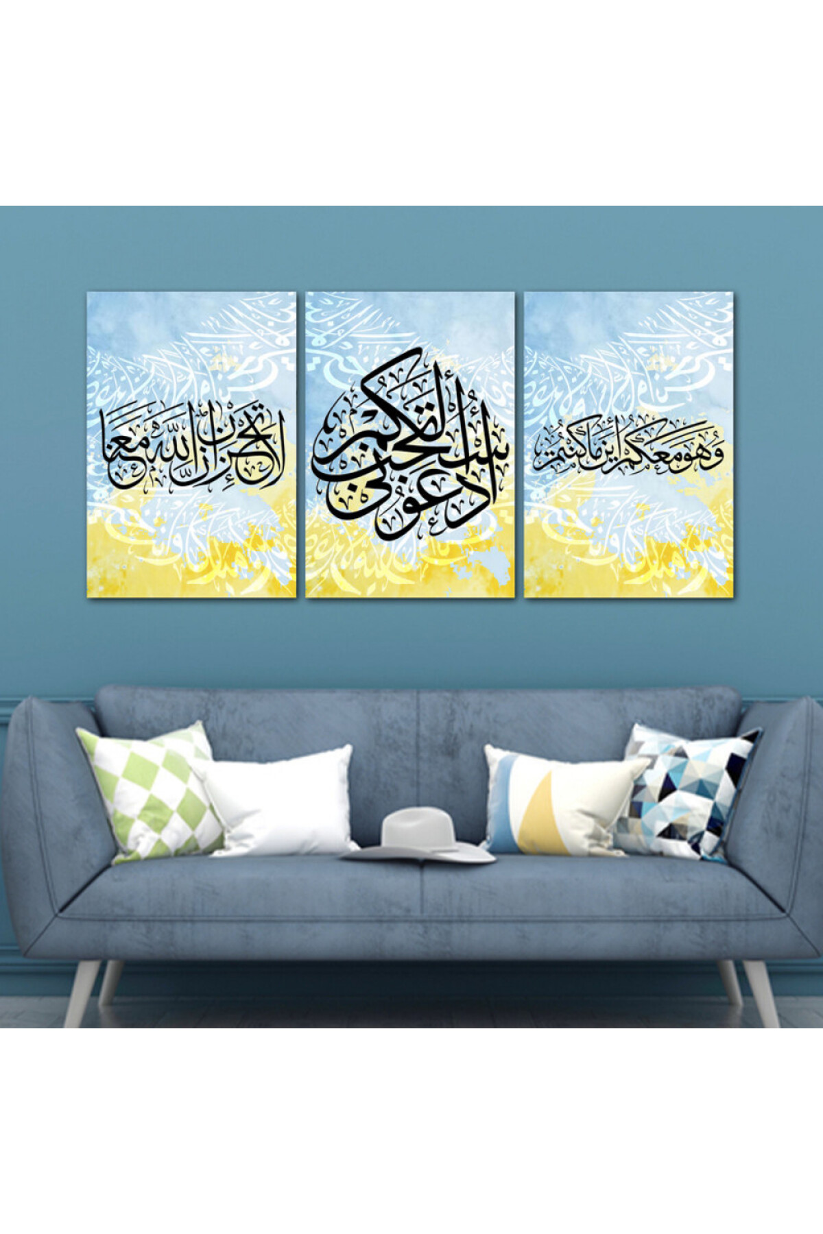 Marktna Three Islamic design canvas panels with a hollow silver frame