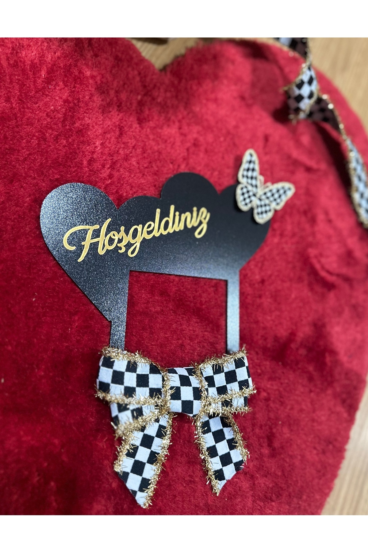 Marrone Checkered Butterfly Socket Frame Checkered Ribbon