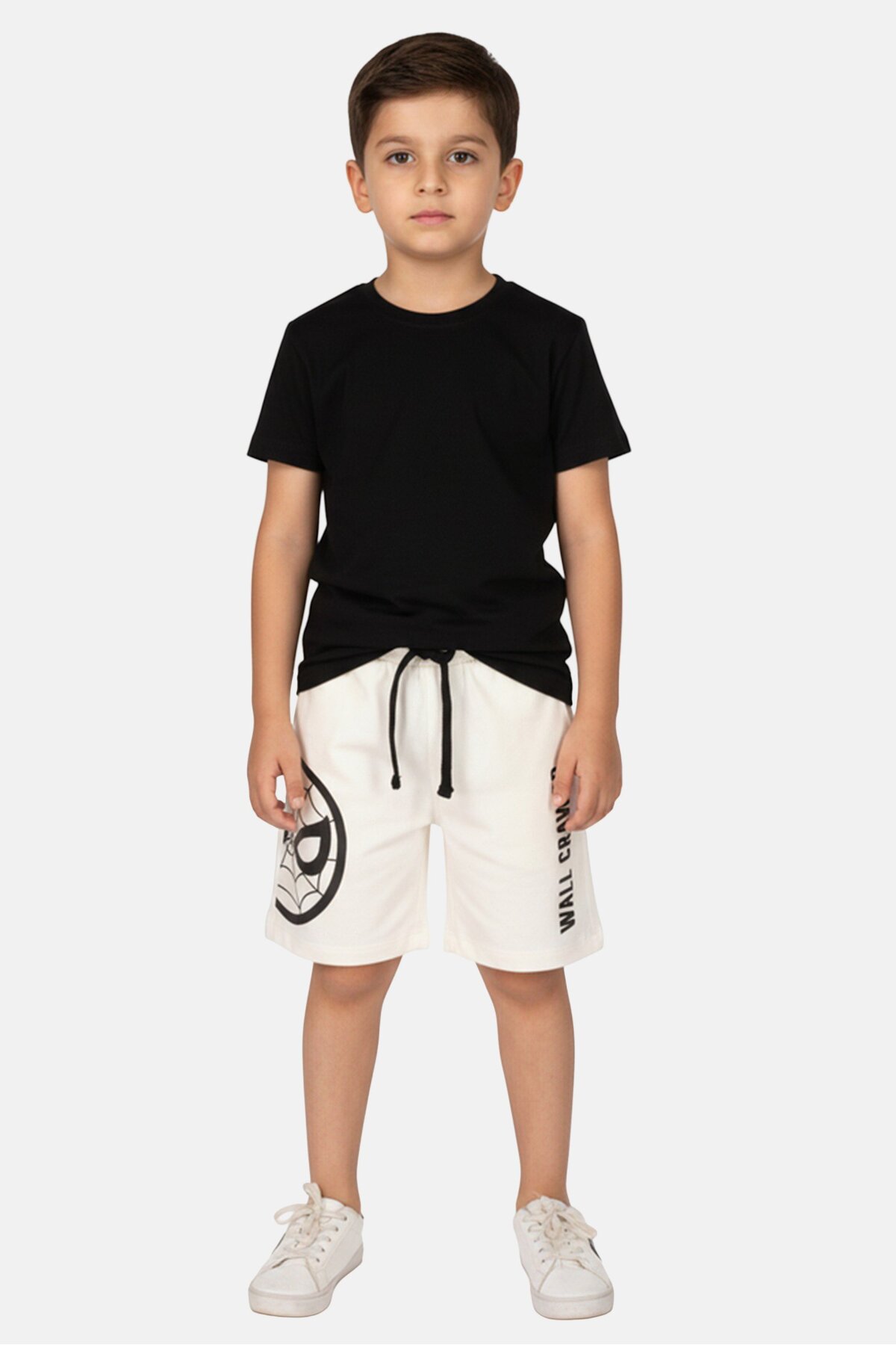 Marvel Toddlers Boy Printed Basic Shorts, Off White features