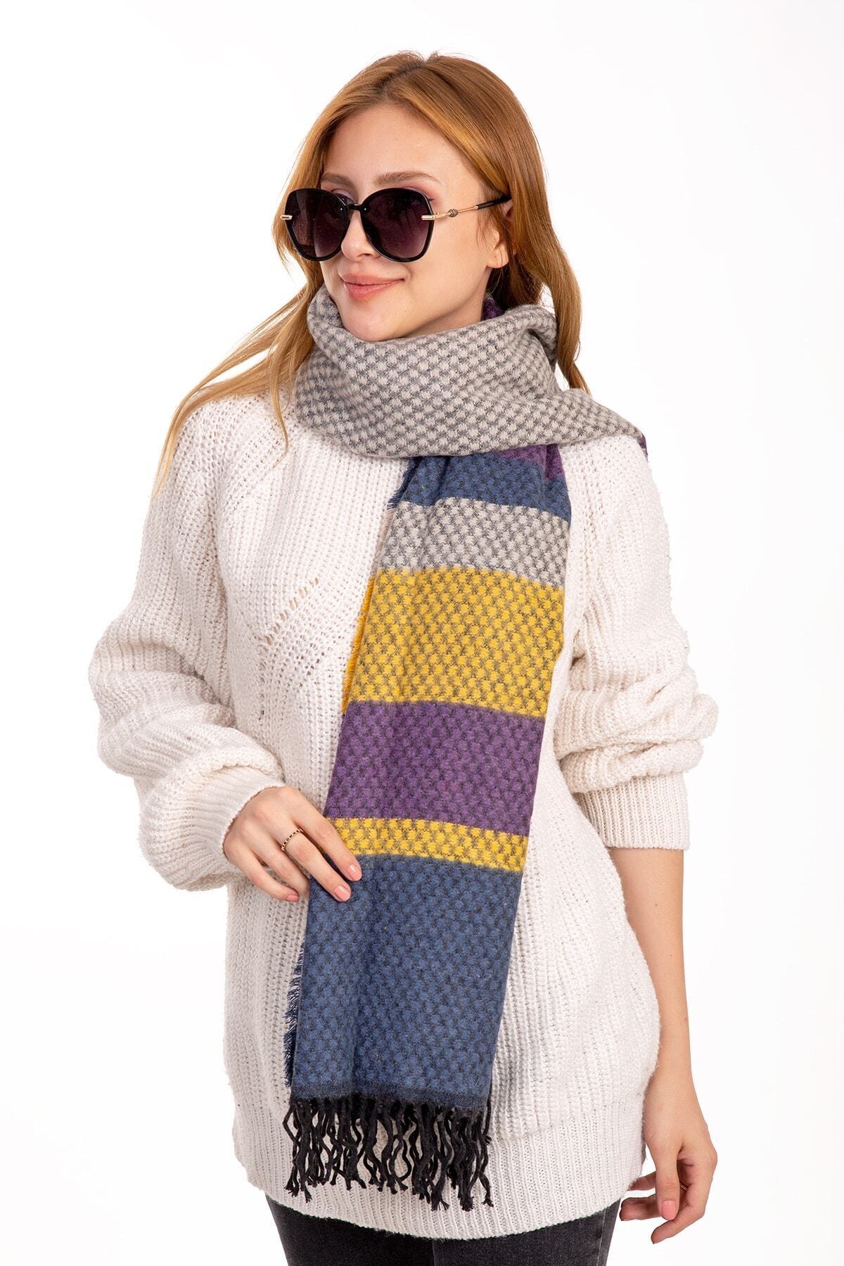 Mc Blue Lady Color Shawl Honeycomb Pattern features