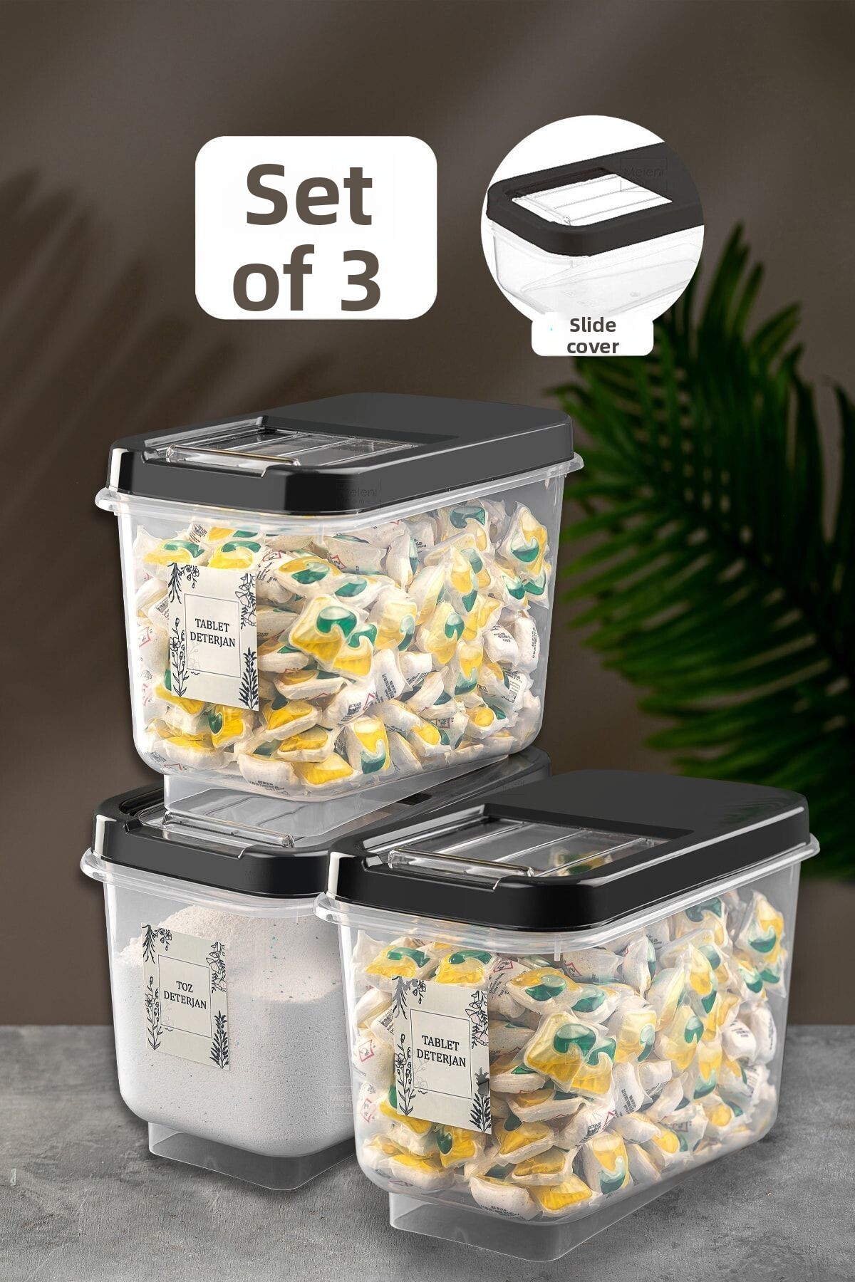 Meleni Home 3 Pack 10 Lt Tablet Detergent Storage Box with Sliding Lid - Labeled Detergent Storage Container Anthracite features