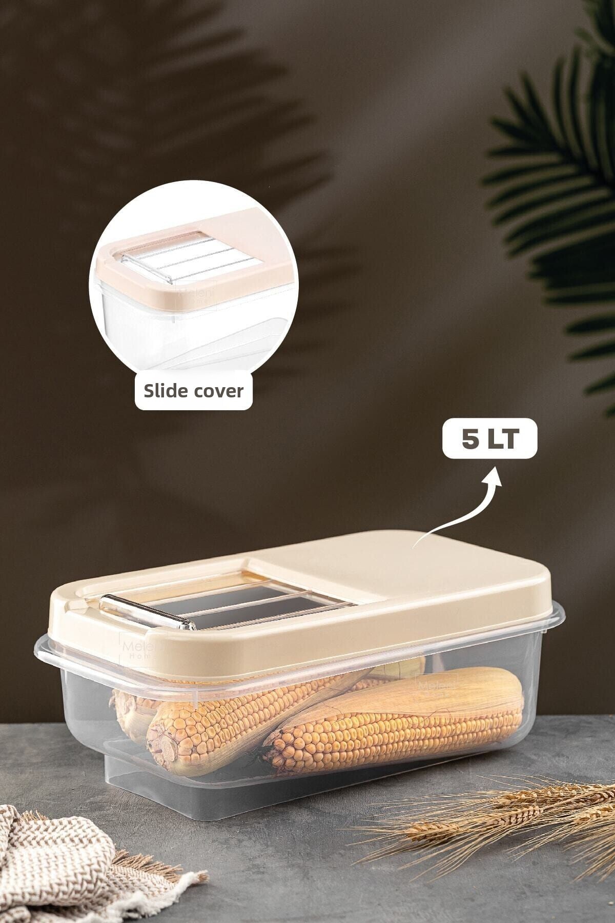 Meleni Home 5 lt Pulses Storage Container - Food Storage Container with Sliding Lid Flour Container Cream Multi Box