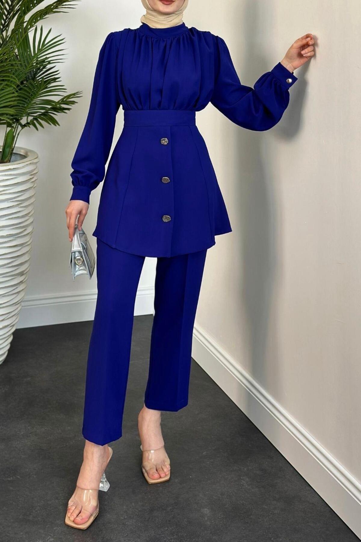 mervenakyuz Saks Blue Buğlem Pants Set