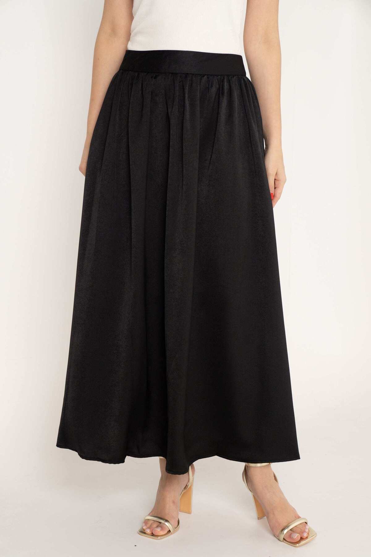 mica Long Solid Flared Skirt features