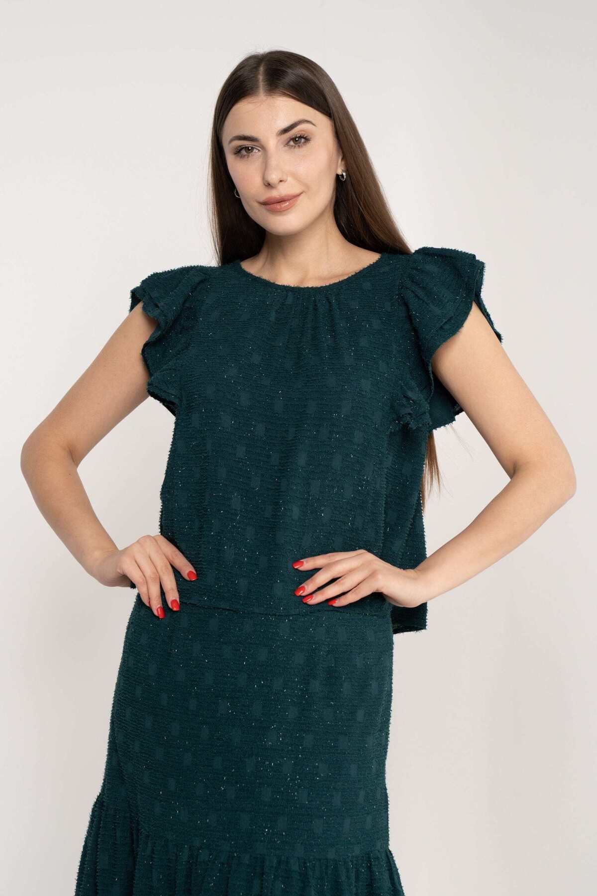 mica Ruffled Short Sleeve Solid Blouse features