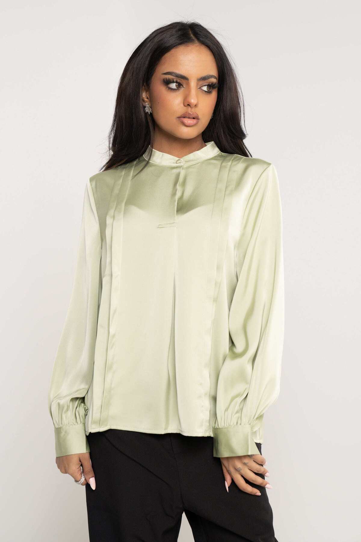 mica Solid Long-Sleeve Top with Flared Sleeves features