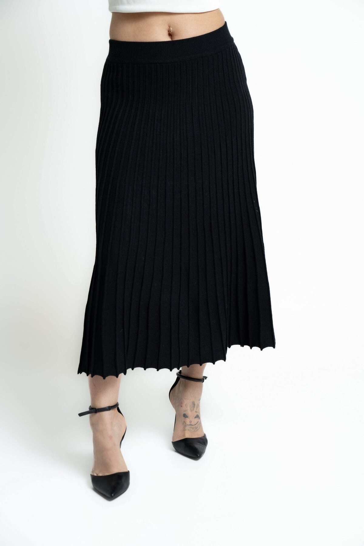 mica Solid Pleated Midi Skirt features