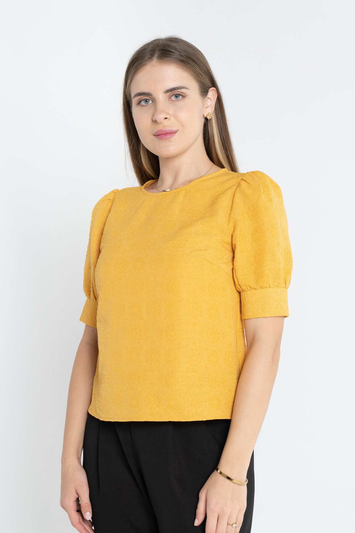mica Solid Puff Sleeve Top features