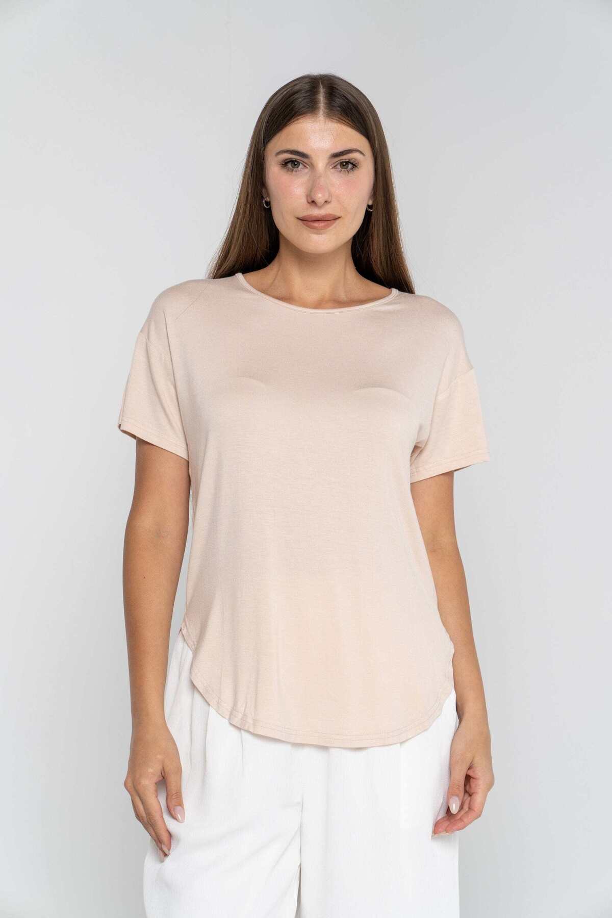 mica Solid Round Neck Short Sleeve Blouse features