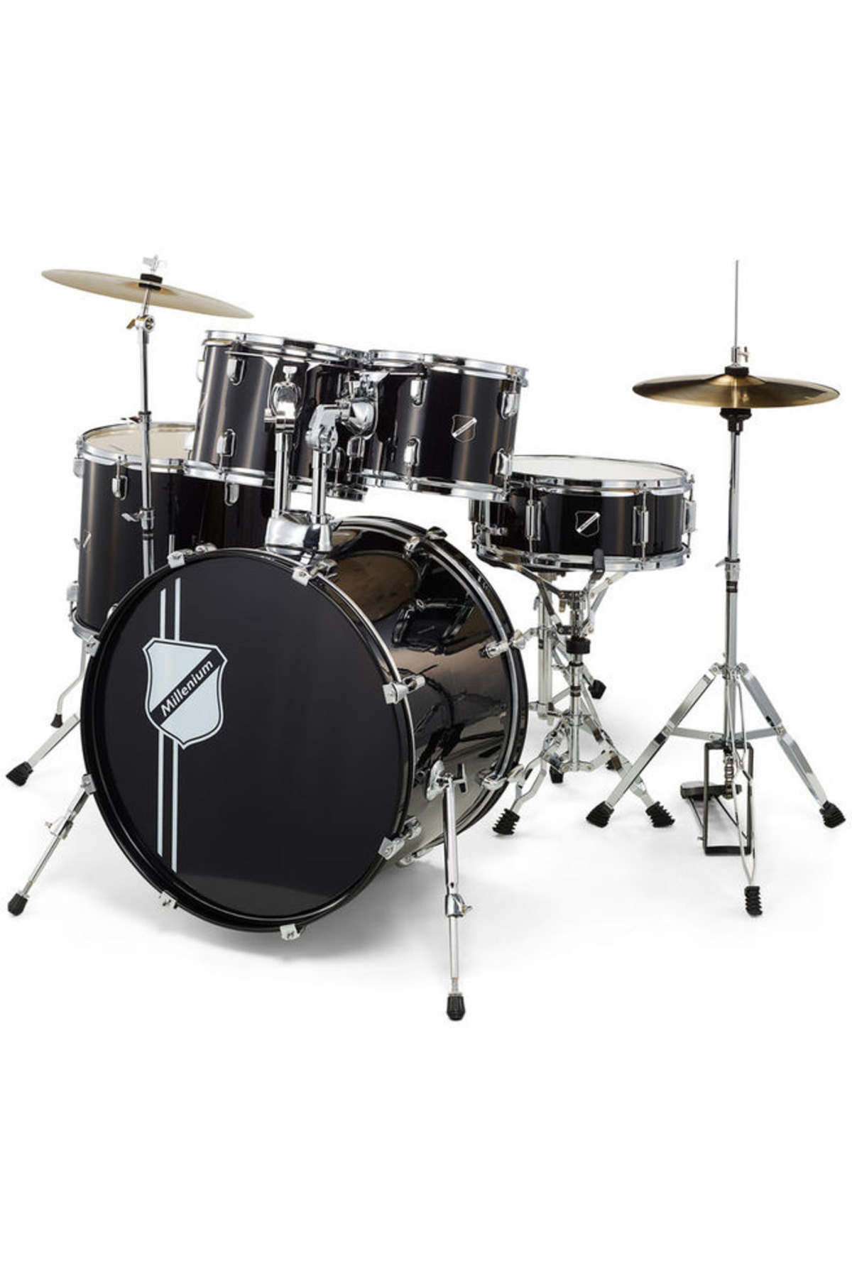 Millenium Complete Acoustic Drum Set for Beginners, Black features