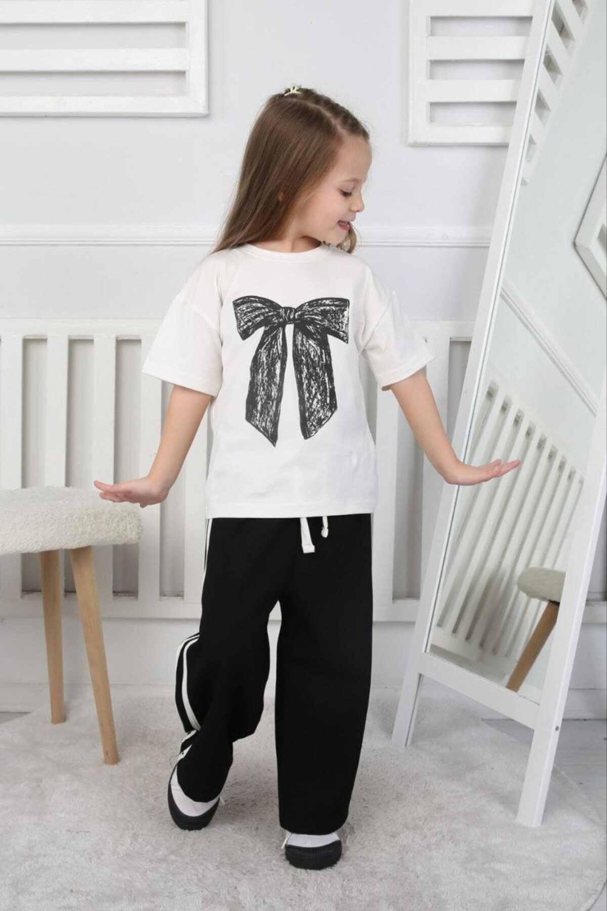 MODA Black and White Ribbon Patterned Double Suit