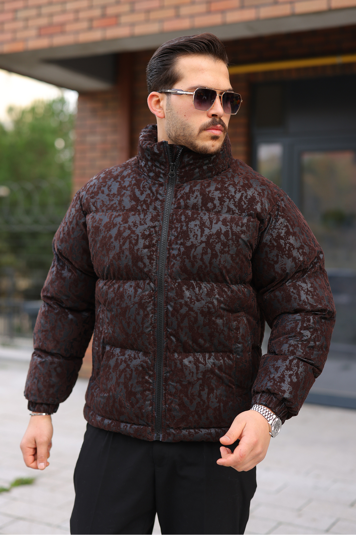 MODAEMAS Men's Patterned Winter Inflatable Coat features