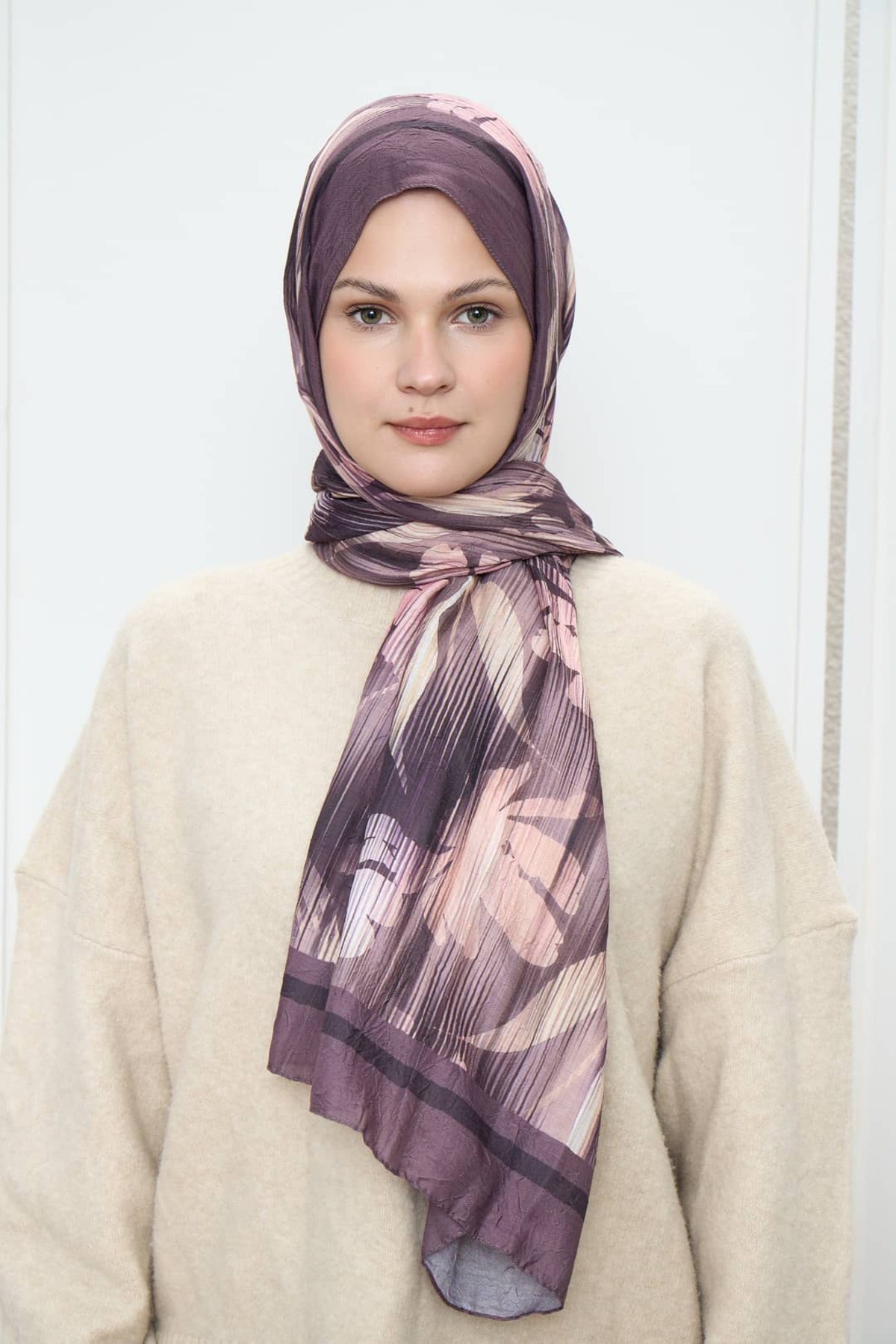 Modakaşmir Line Flower Pattern Bamboo Shawl features