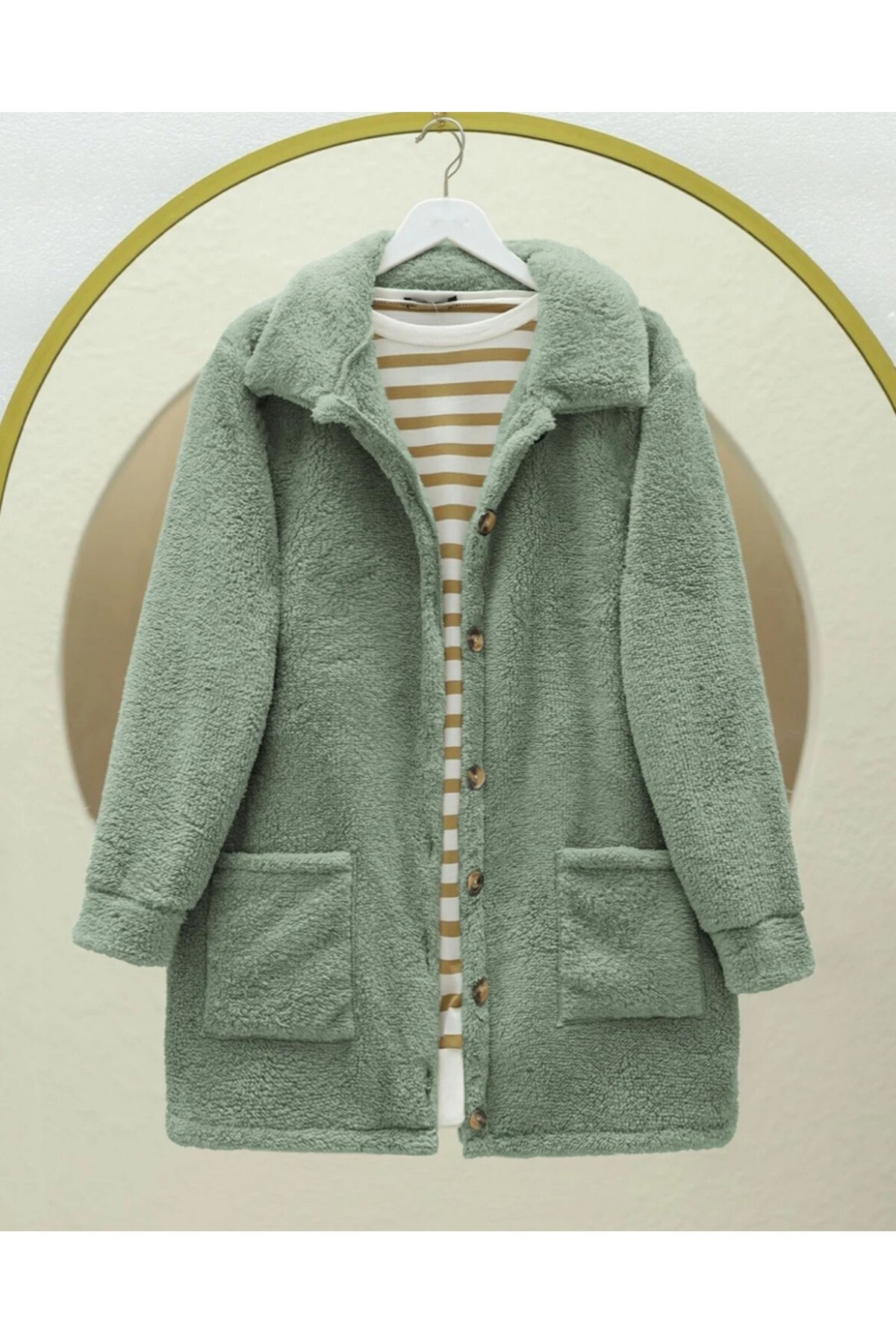 Modamorfo Buttoned Plush Jacket with Pockets - Mint features