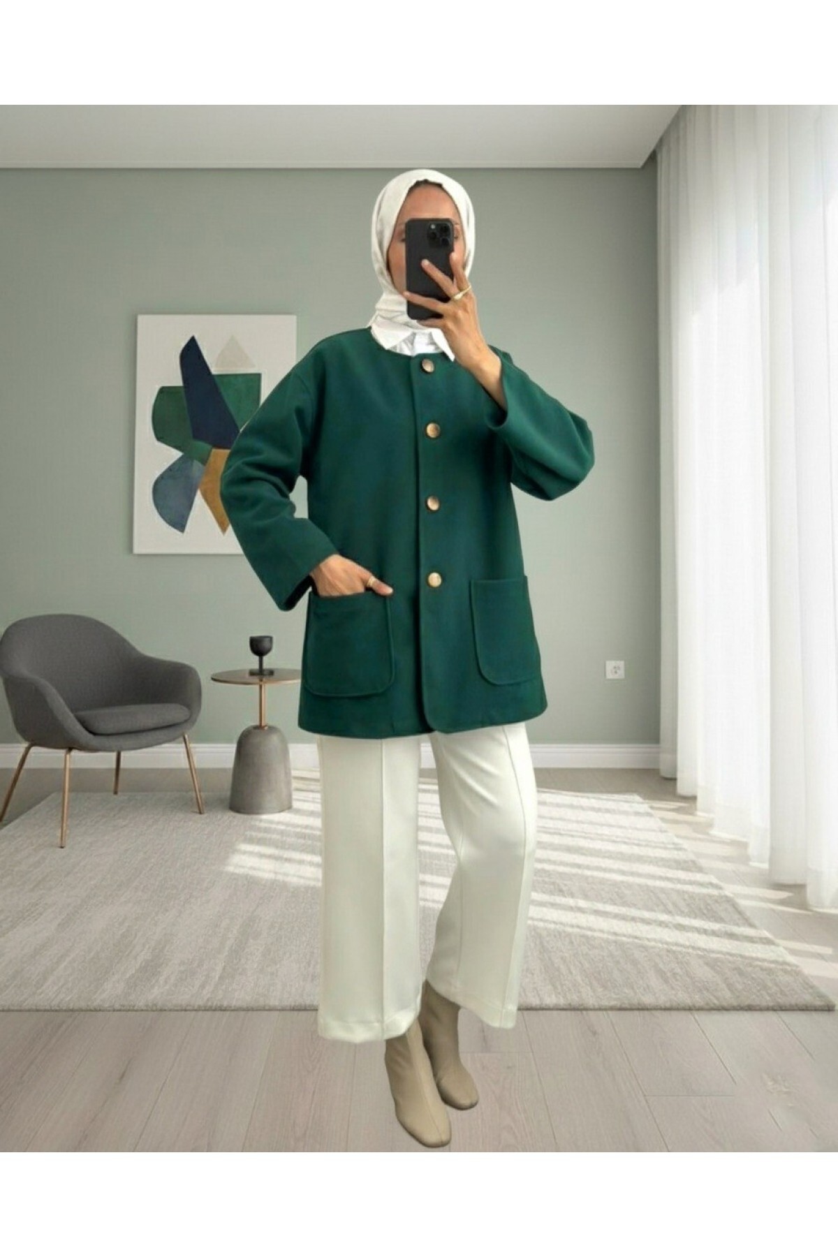 Modamorfo Double Pocket Buttoned Front Cashmere Jacket - Emerald features