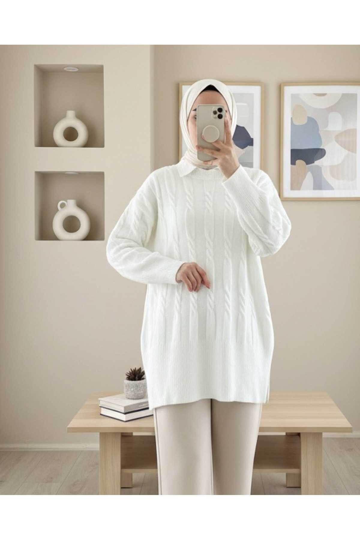Modamorfo Embossed Patterned Soft Knit Sweater - Ecru features