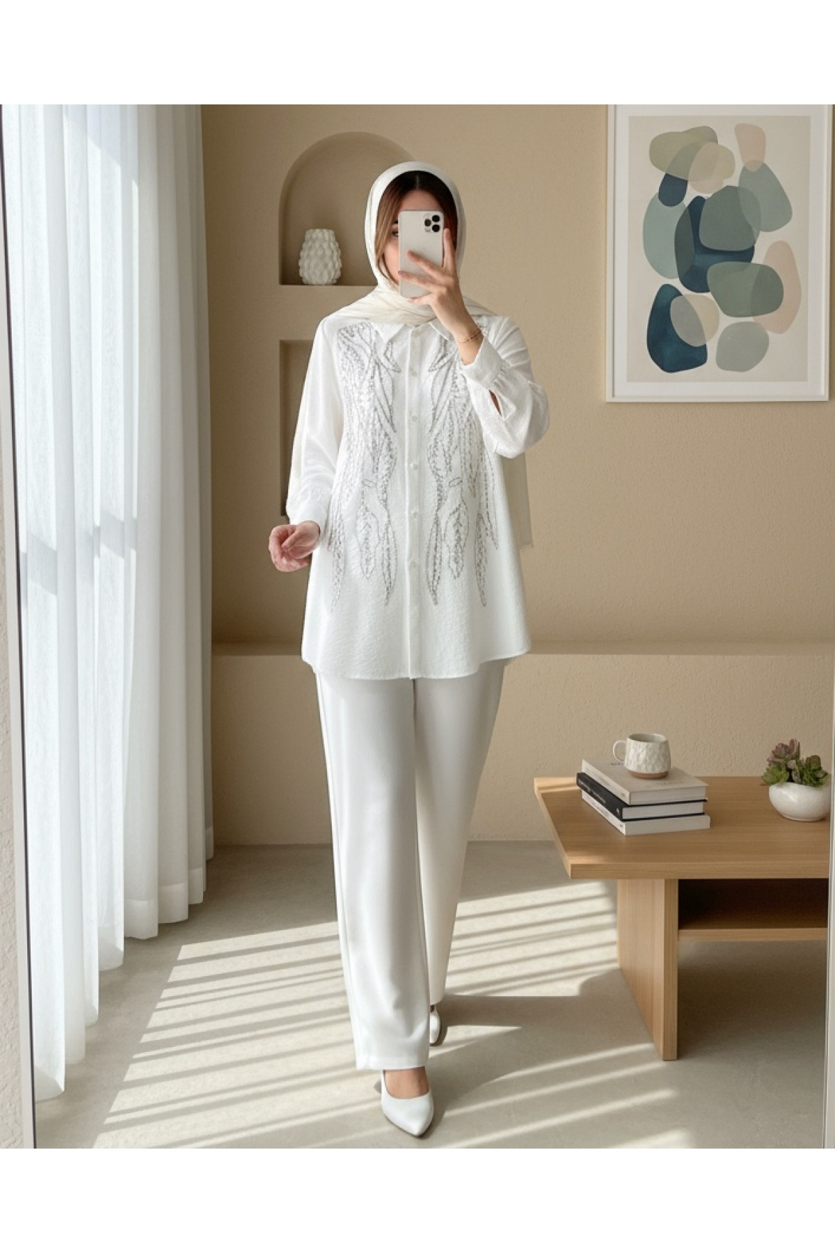 Modamorfo Sequin Embroidered Buttoned Shirt features