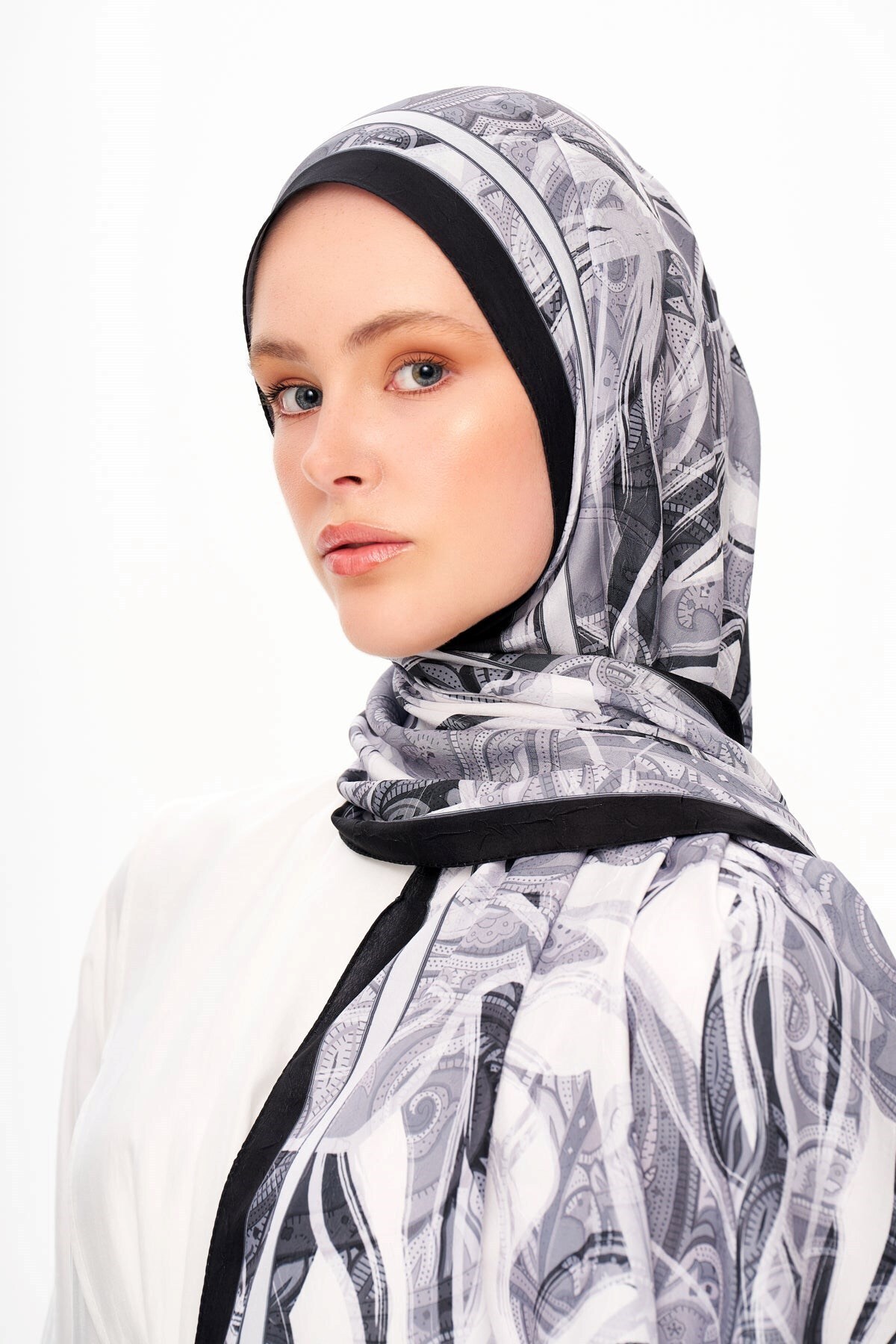 MOISCARF Fleur De Brume Patterned Shawl Dark Gray features