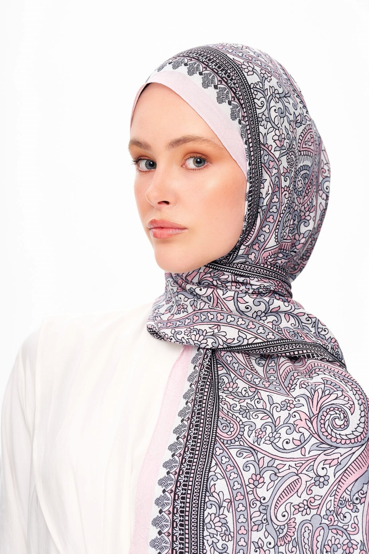 MOISCARF Pai̇sverde Zero Weight Patterned Ethnic Patterned Shawl Light Gray features