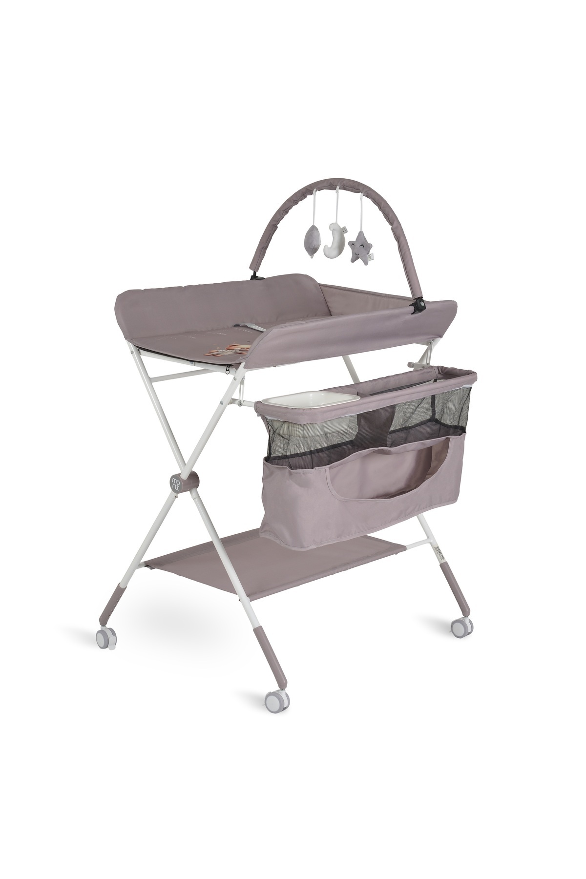 Moni Kaskada multifunctional changing table, foldable, height-adjustable, with toy bar features