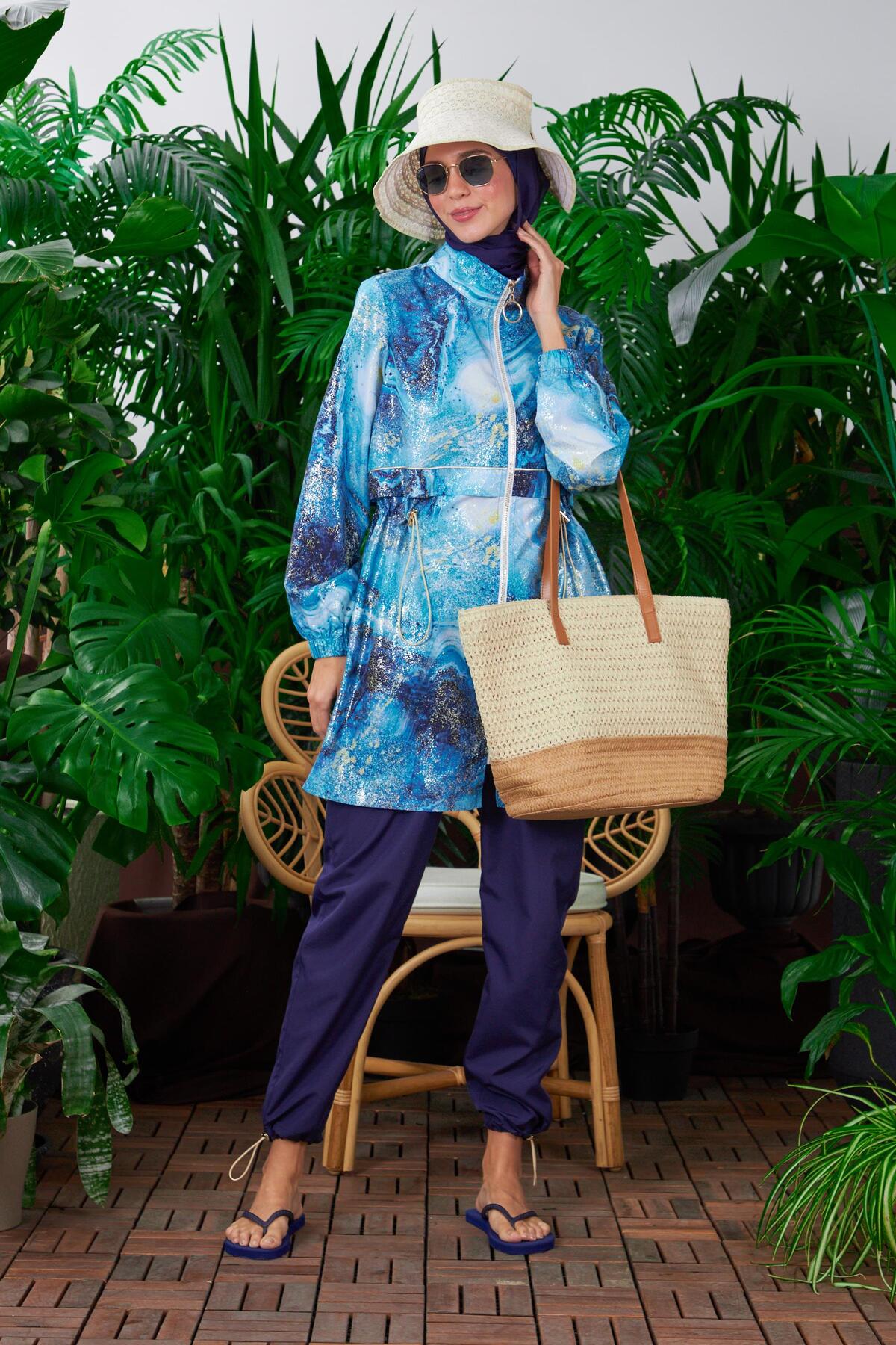 Moodbasic Gold marble patterned hijab swimwear features