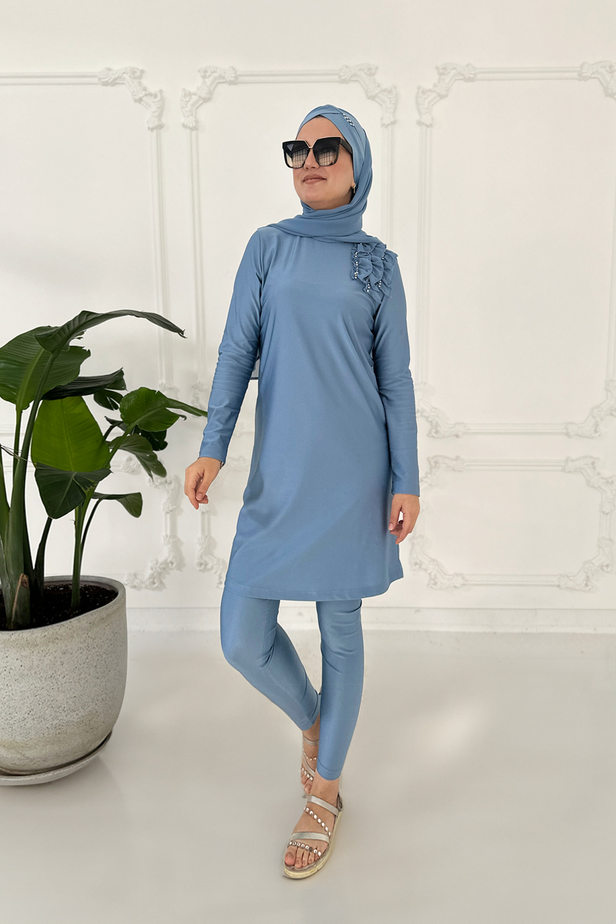 Moodbasic Ruffled Rhinestone TESETURE SWIMSUIT