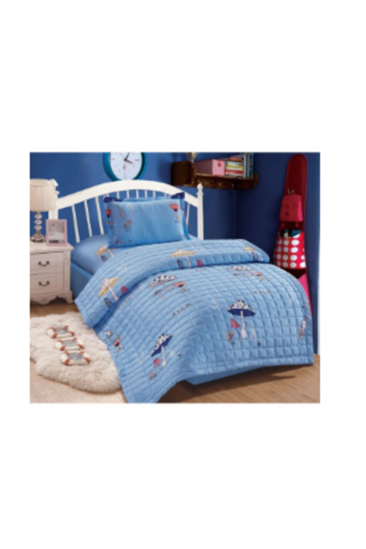 Moon 3-Piece Printed Microfiber Bedspread Set Blue Single features