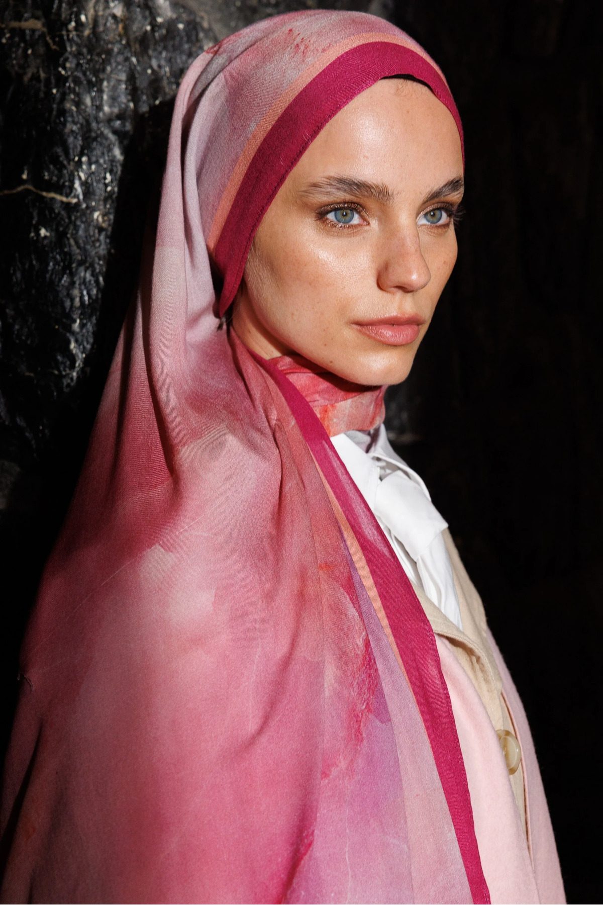 Mooncorn Fuchsia Moreal Pattern Ramie Shawl features