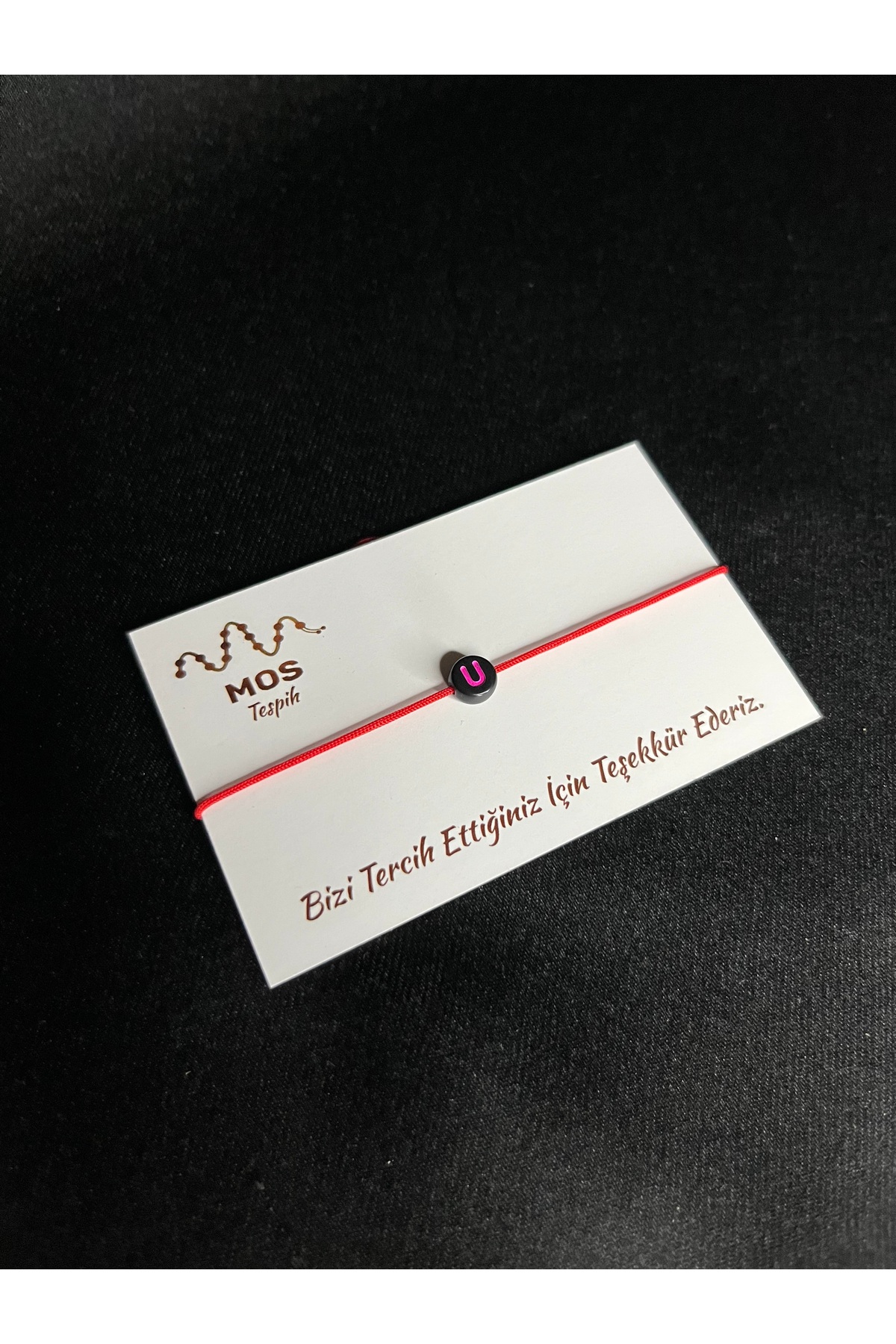 Mos Tespih Letter U Adjustable Drawstring Luck Bracelet features