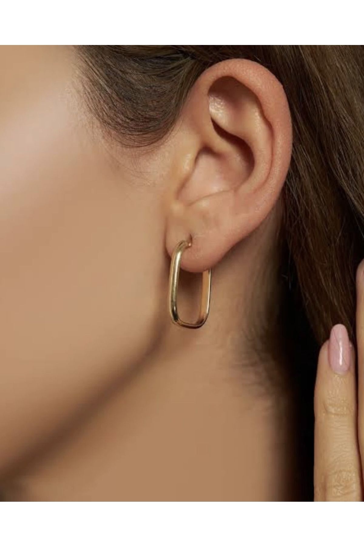 Müge Bijouterie Steel Rectangular Gold Earring features