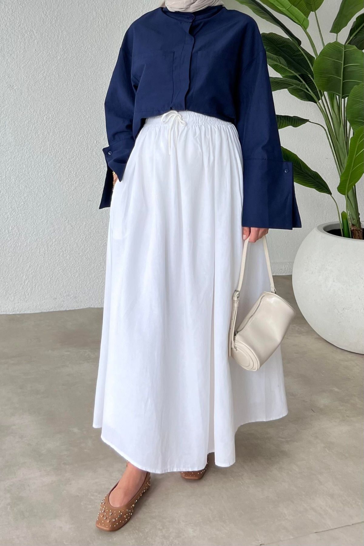 My Blog White Linen Skirt with Adjustable String