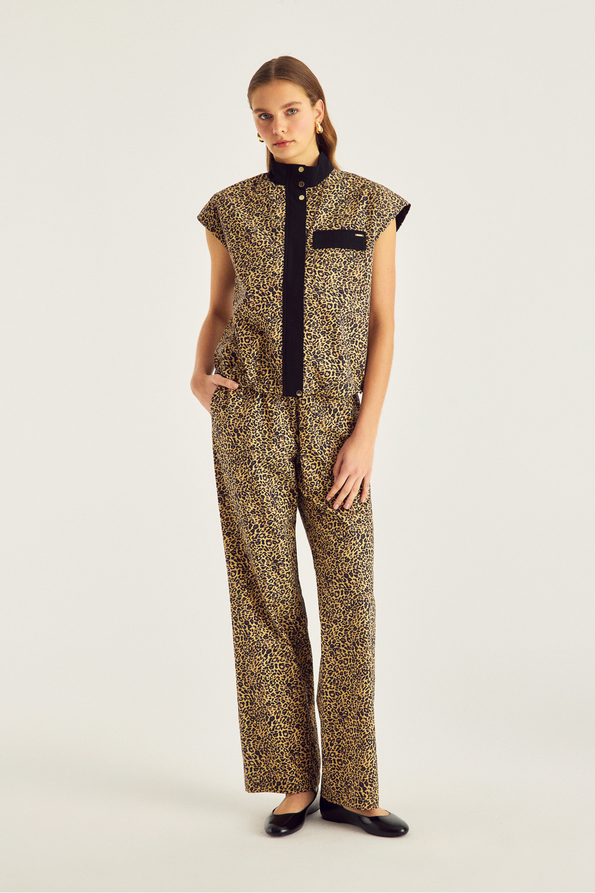 Naramaxx Leopard Pattern Poplin Casual Pants features