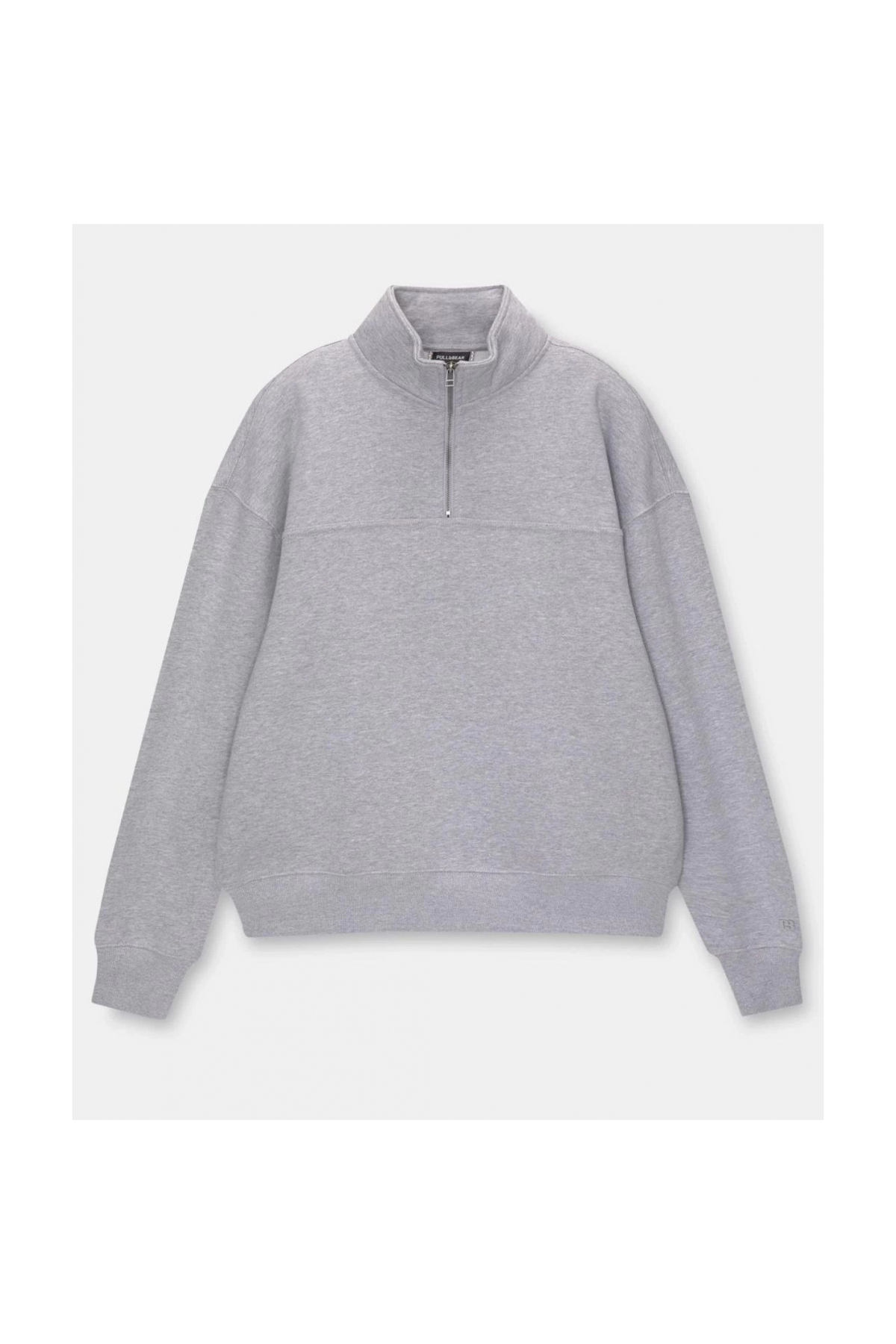 Narnuga Oversize Half-Zip Collared Basic Sweatshirt - Gray - features