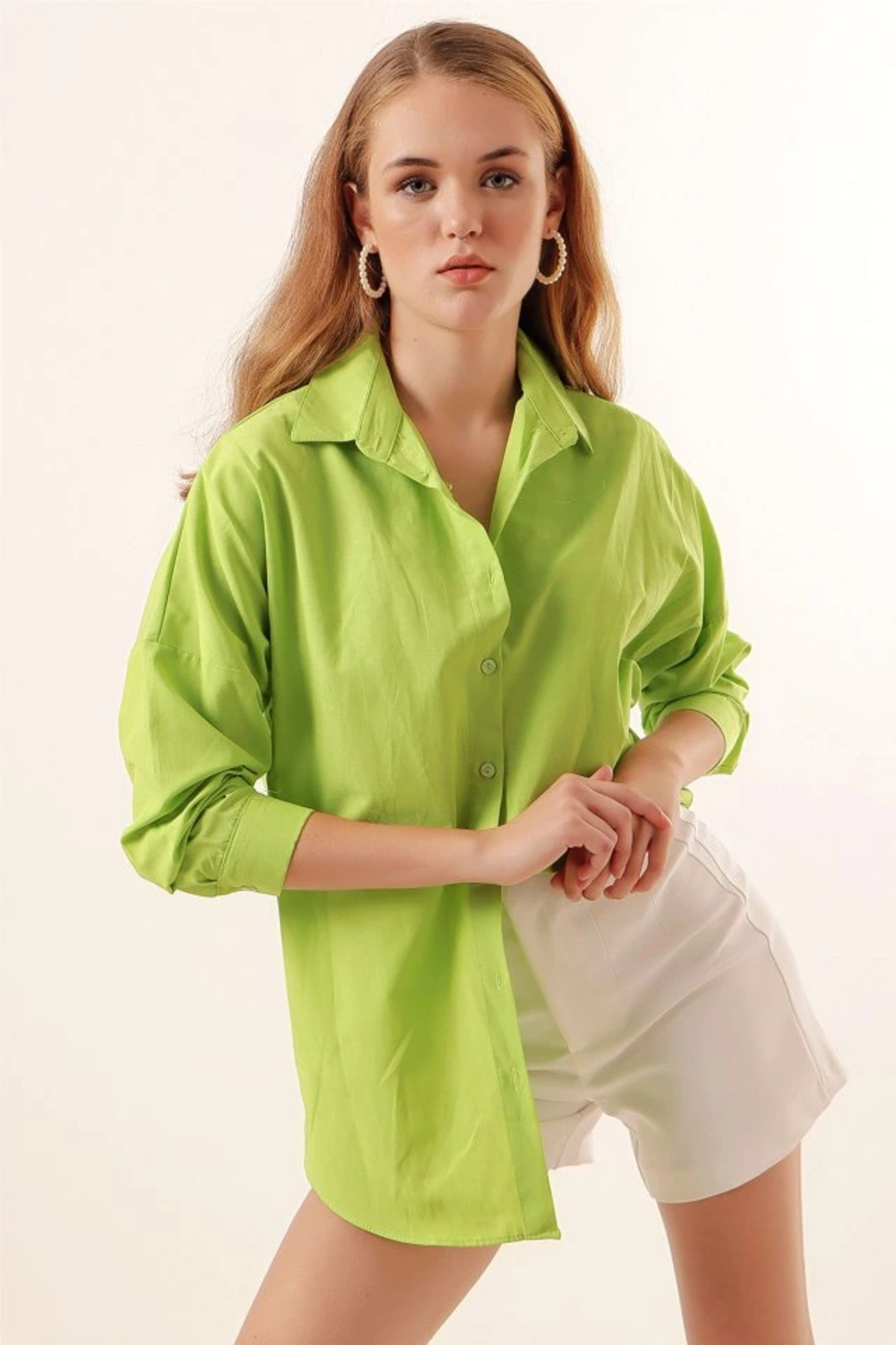nedo7 3900 Oversize Long Basic Shirt - Çağla features
