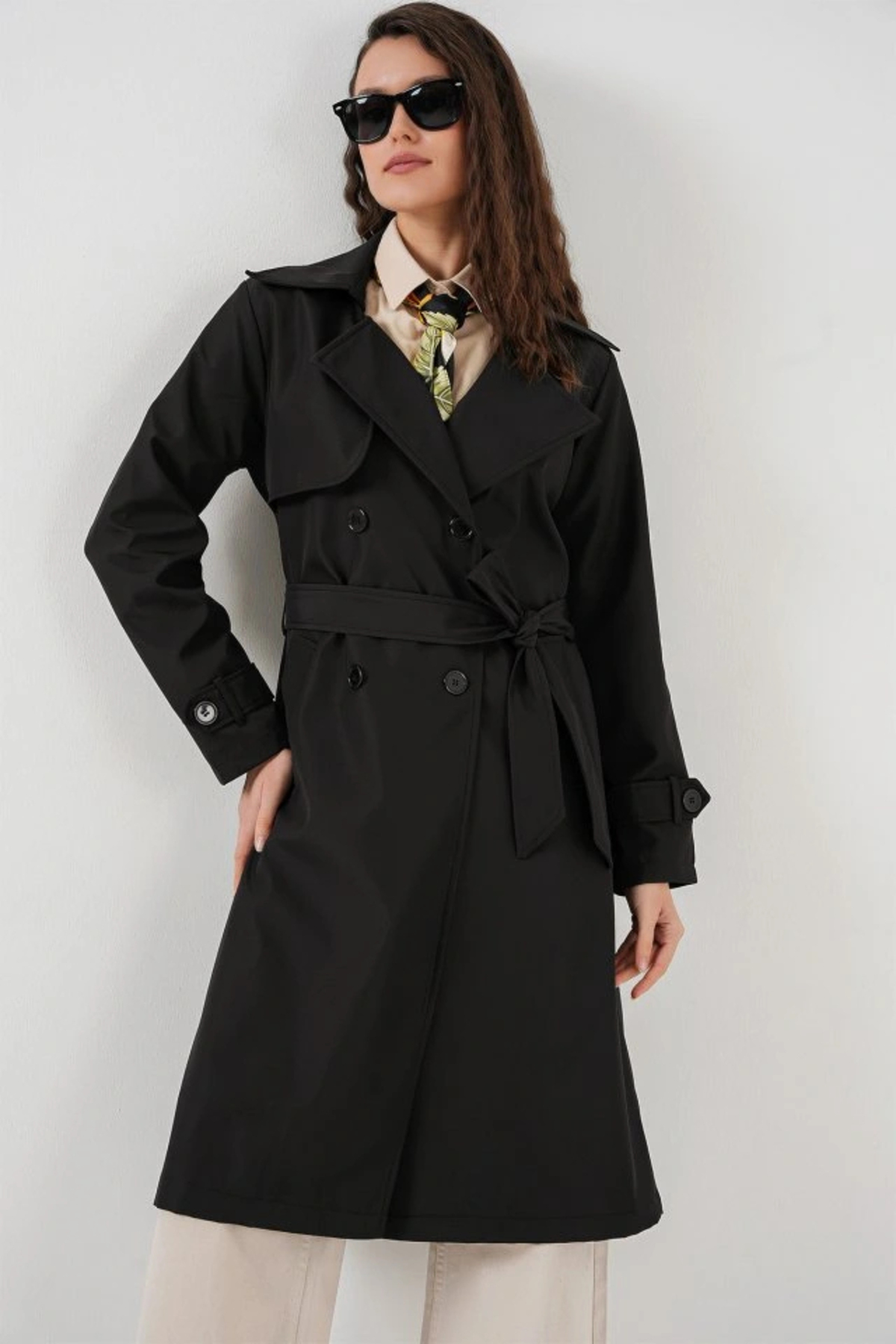 nedo7 5918 Double Breasted Collar Trench Coat - Black features