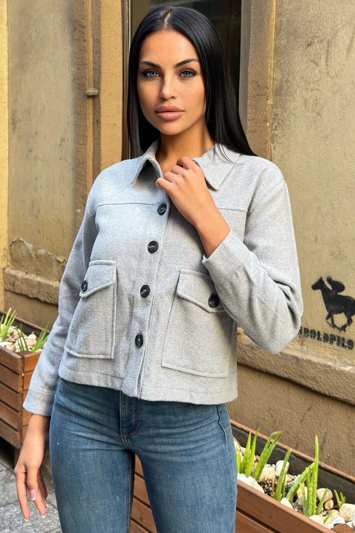NEW LAVİVA Gray Double Pocket, Buttoned Stamp Jacket features