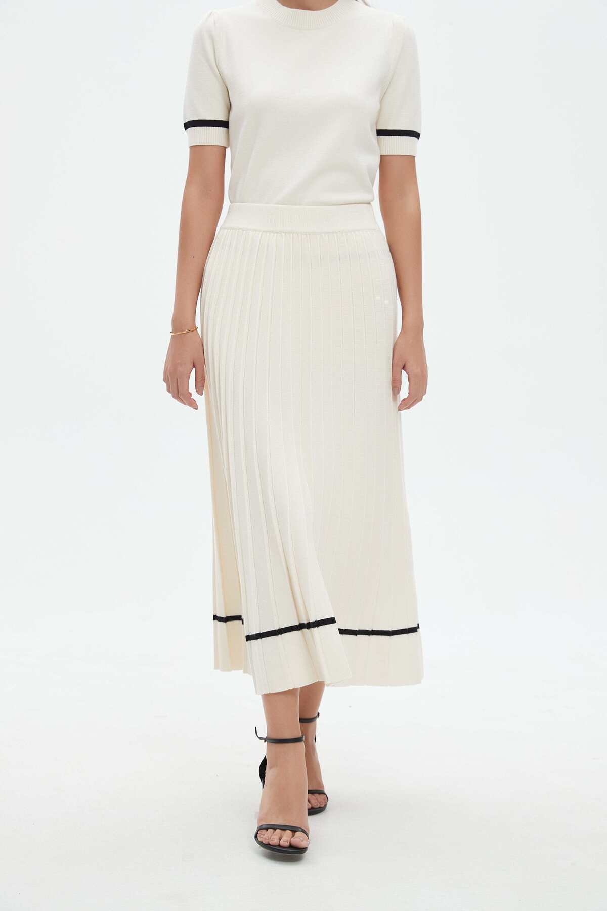 Nichii Ribbed Solid Midi Skirt features