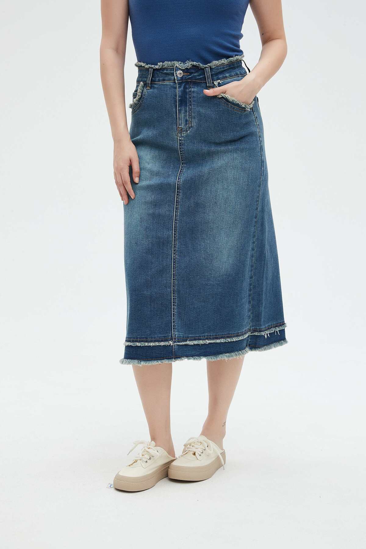 Nichii Solid Midi Skirt with Pockets features