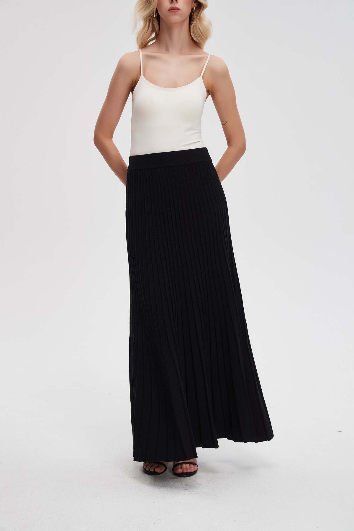Nichii Solid Pleated Midi Skirt features