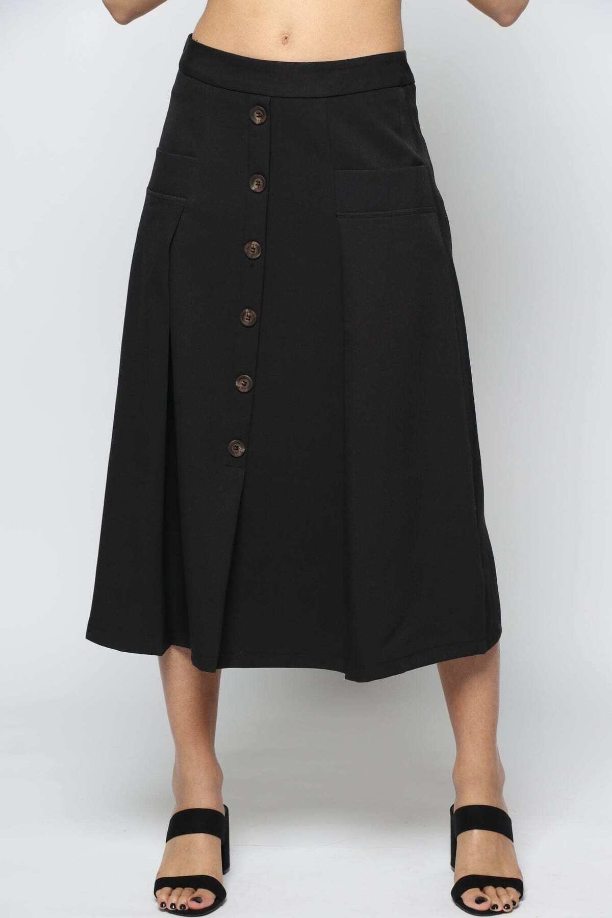 Nichii Solid Wide Midi Skirt with Pockets features