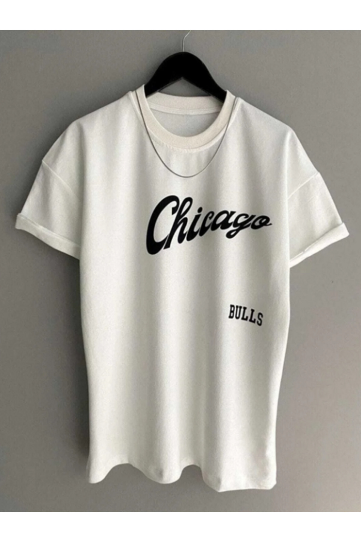 NOFLEN Chicago Front-Back Printed Basic Oversize T-shirt features