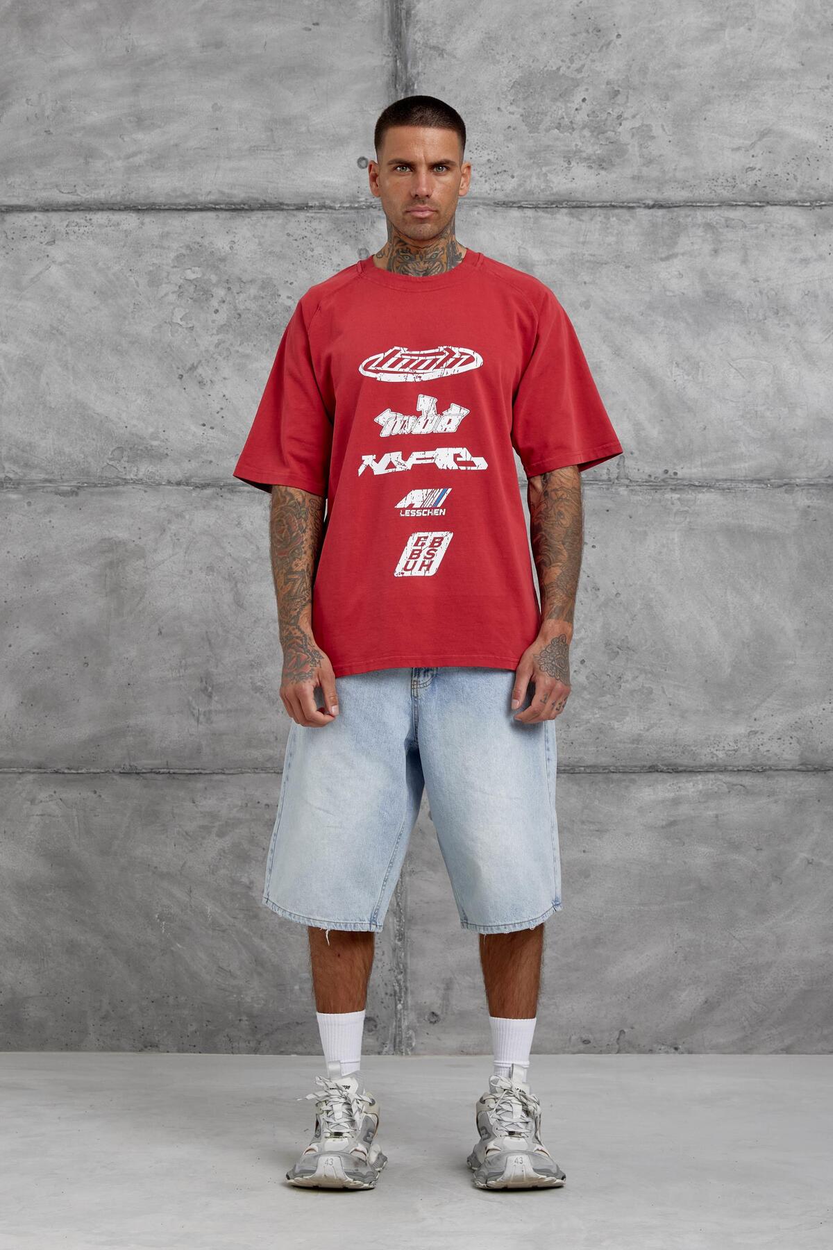 NOMARC Red Lesschen Printed Washed Oversize Tshirt features