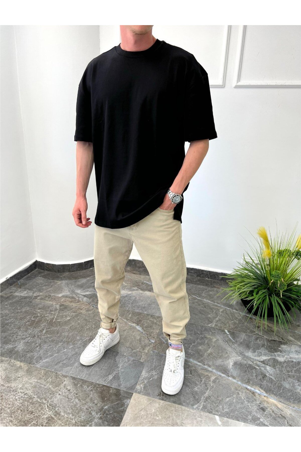 NOMARC Short Front Long Back Basic Black T-shirt features