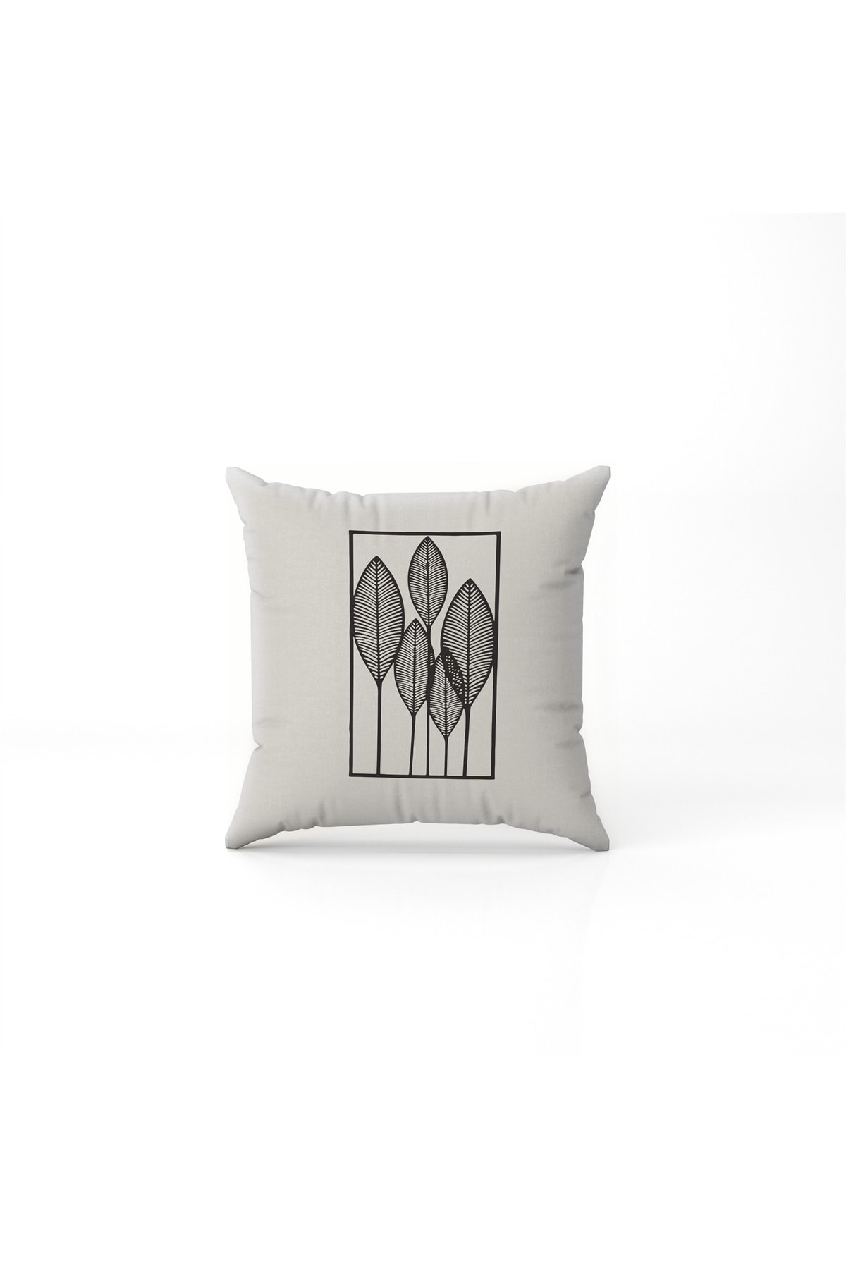 NT Handmade 42x42cm Cotton Woven Throw Pillow Pillow Case with Leaf Pattern Printed on Cream Background features